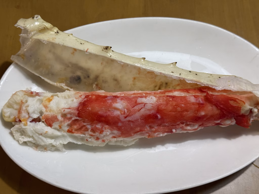 スーパーで売っている細いカニなら「ちゅるっ」と吸う感じですが、このタラバガニは完全に別物。 まるで肉厚なホタテや、高級な伊勢海老のステーキを噛み締めているような感覚です。