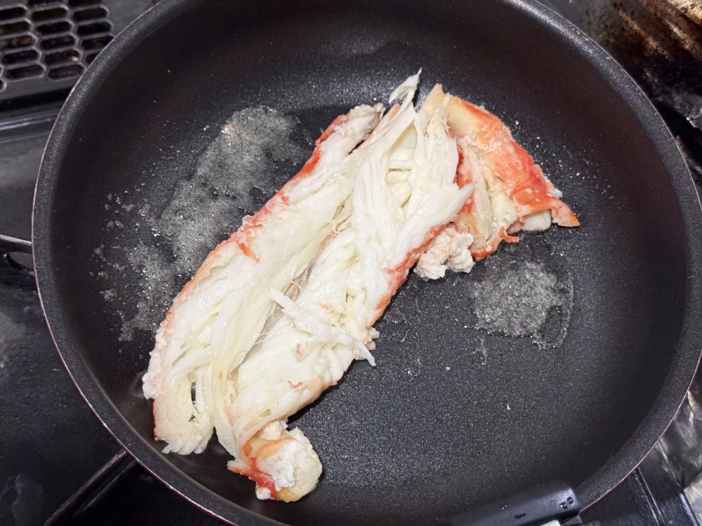 そのまま食べた時の感動も冷めやらぬまま、次は「焼き」のアレンジに挑戦です。 タラバガニは焼くことで水分が適度に飛び、旨味がギュッと凝縮されるのが特徴です。